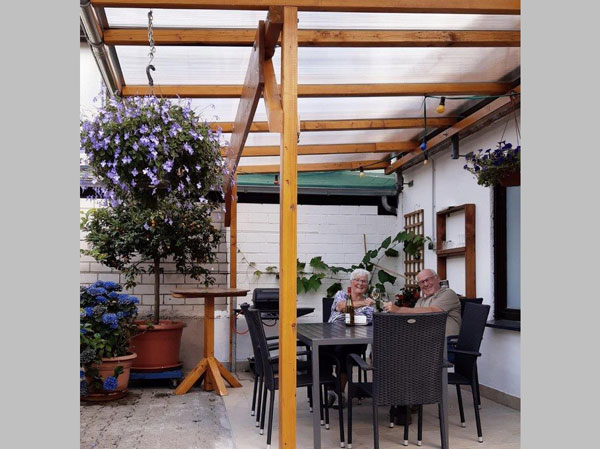 Eine Sitzecke im Hof mit Grillmöglichkeit und ein Fahrradabstellraum stehen unseren Gästen zur Verfügung.